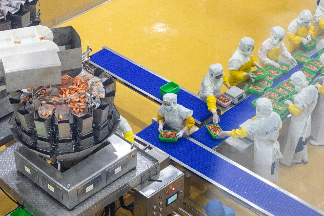 在这里,一条罗氏沼虾仅用两小时即可完成从验收、蒸煮、分选到速冻的全流程工业化处理。“八大中心、六大功能区”串联起一条完整产业链,推动农产品在标准化流程中实现价值跃升。这正是农业工业化的本质特征:以工业的精准性,拓展农业的附加值空间。